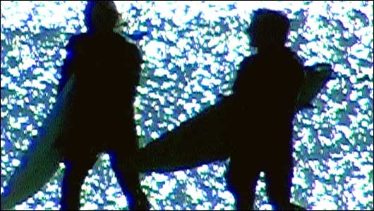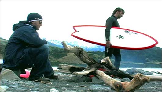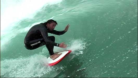 「父がジョーに削ったサーフボードにのるトム・カレン」