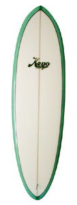 今日のサーフボード市場では、KEYOサーフボードの持つ「レトロ」の側面は重要である。KEYOサーフボードは僅かの厚さで、通常のボード以上のドライブを多く得る。“フィッシュ”はポイントブレーク、河口の波に最適だ。“エッグ”はビーチブレークに強い。どちらとも波を非常に捕らえやすいボードである。