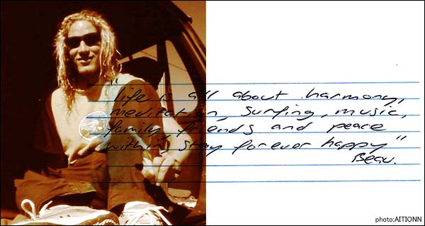 メディテーション、 サーフィン、 ミュージック、 家族、 友達、 そして平和、、、、 人生とはこれらが調和する限り、 私たちはいつまでも幸せでいれる。 ボー ヤング